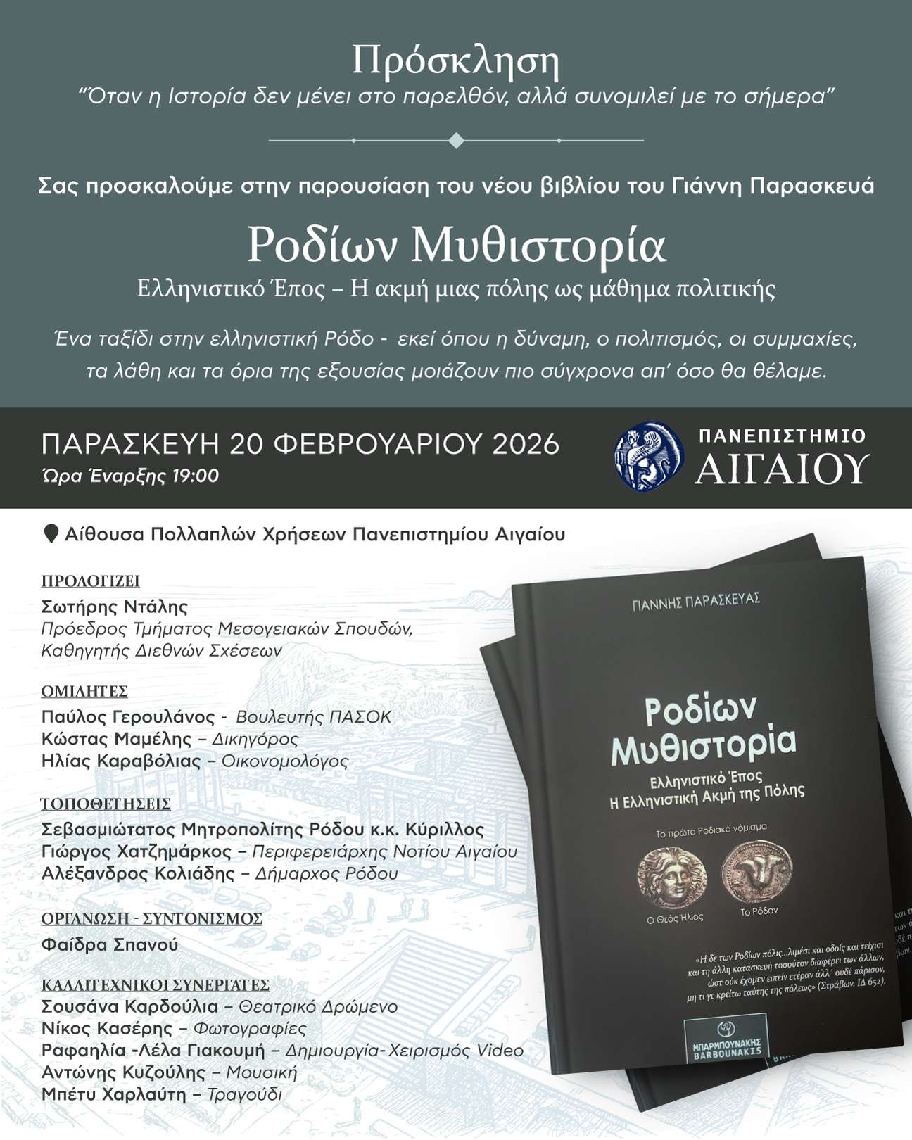 Παρουσίαση του βιβλίου του Γιάννη Παρασκευά « «Ροδίων Μυθιστορία»