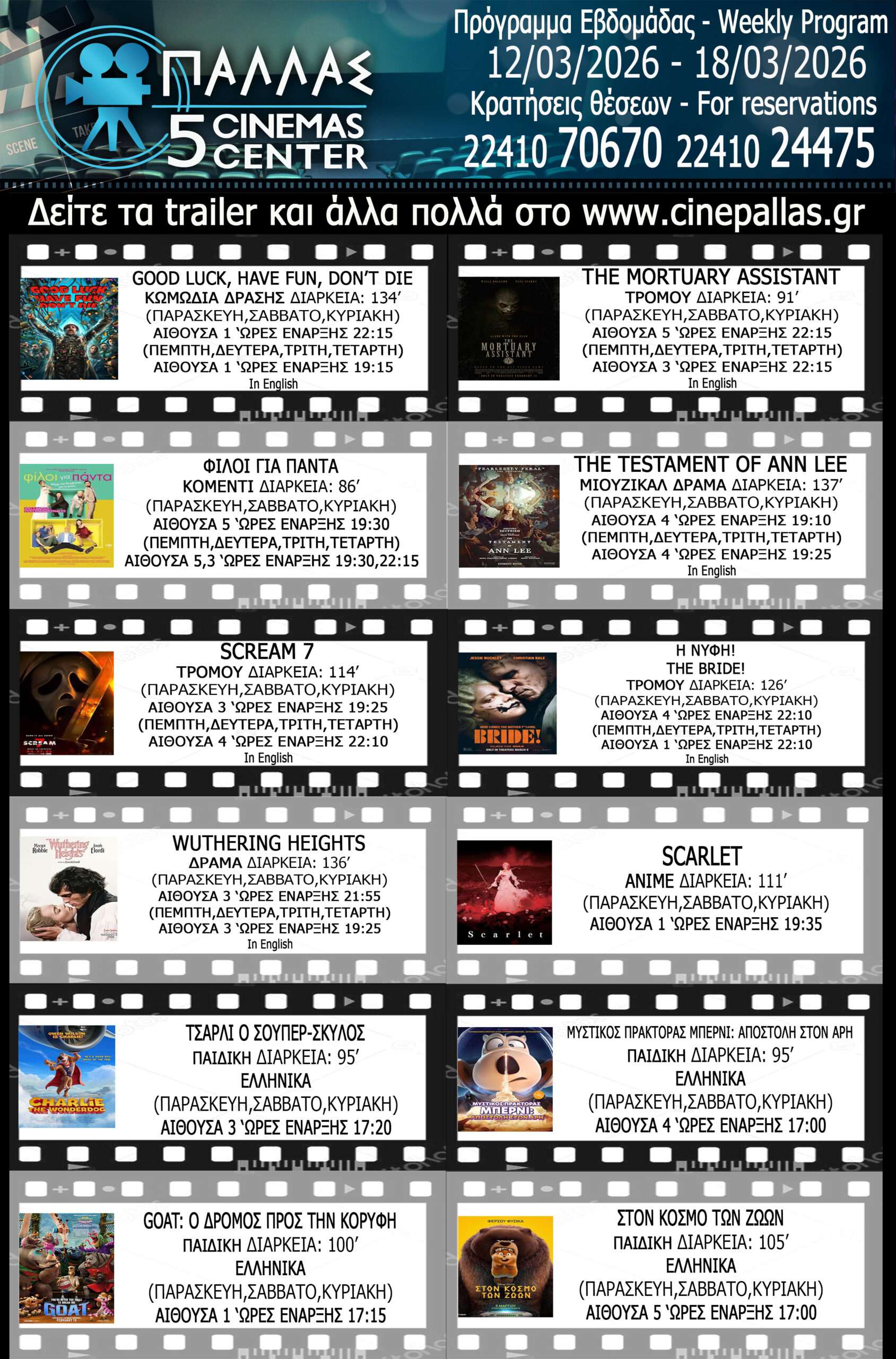 ΠΡΟΓΡΑΜΜΑ ΕΒΔΟΜΑΔΑΣ 12/03/26-18/03/26