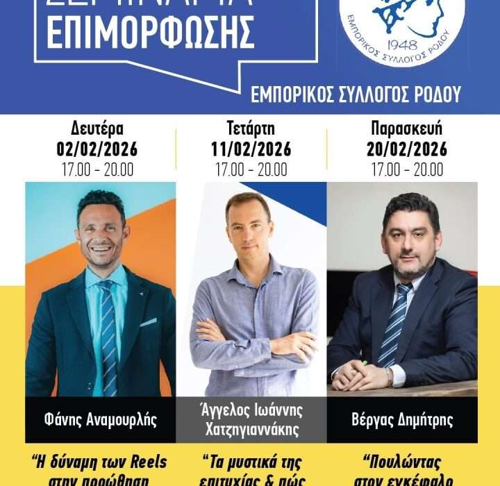 Ο Εμπορικός Σύλλογός Ρόδου διοργανώνει τον μήνα Φεβρουάριο, τρία δωρεάν επιμορφωτικά σεμινάρια.