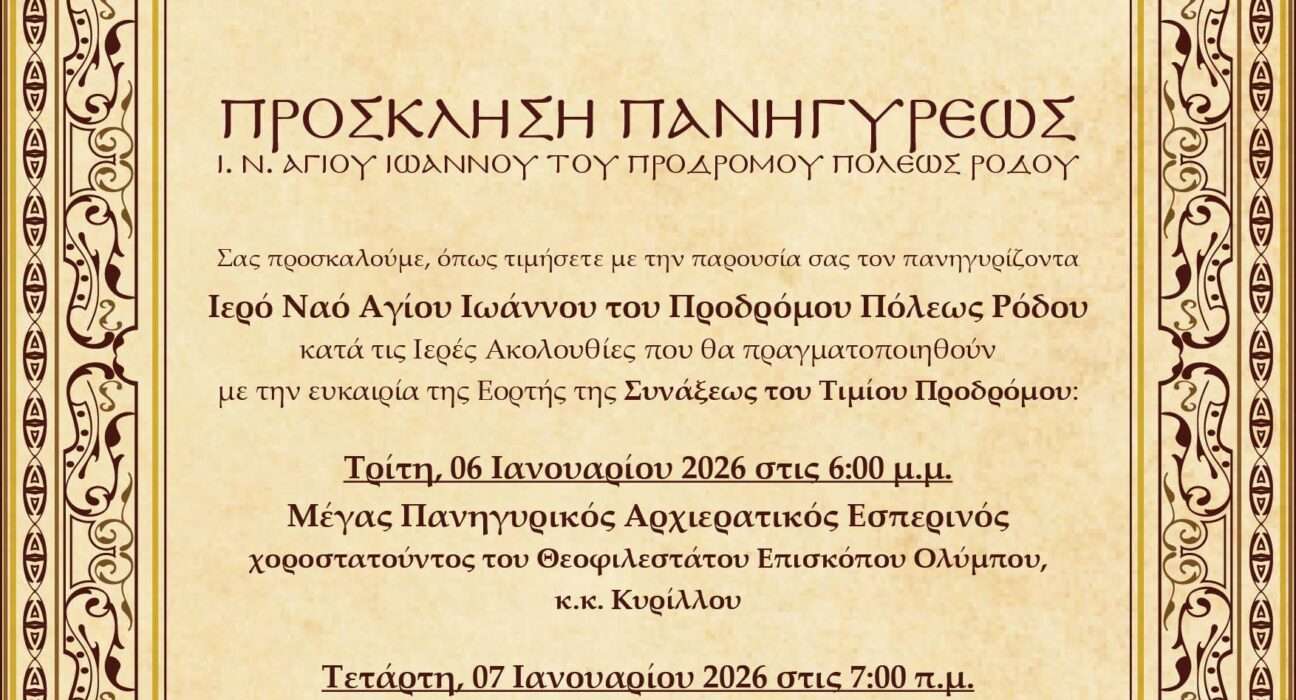 Σας προσκαλούμε, όπως τιμήσετε με την παρουσία σας τον πανηγυρίζοντα