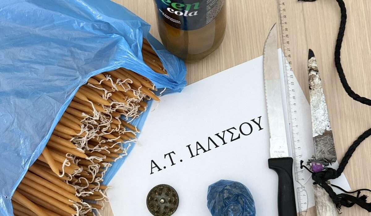 Εγκλημάτων Ρόδου. Ακολούθησε έρευνα στην κατοικία του όπου βρέθηκαν: