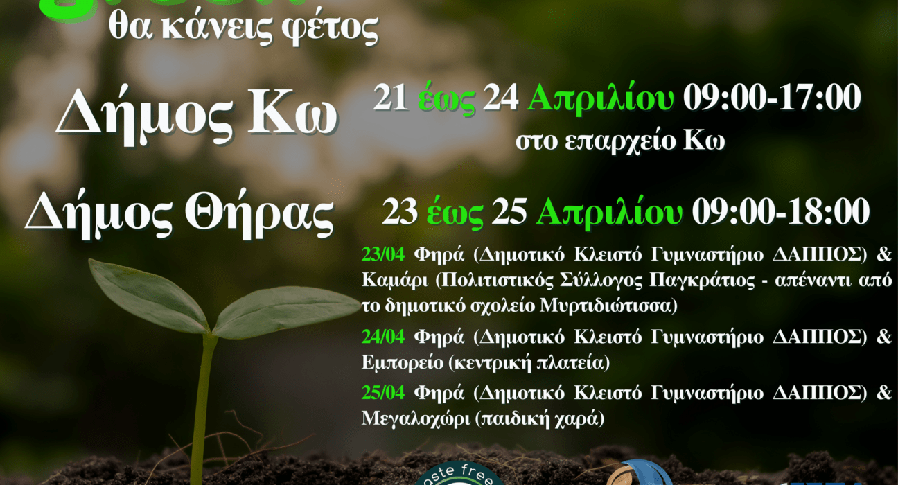 Δήμος Θήρας – από 23 έως 25 Απριλίου, ώρες 09:00 – 18:00 ως εξής: