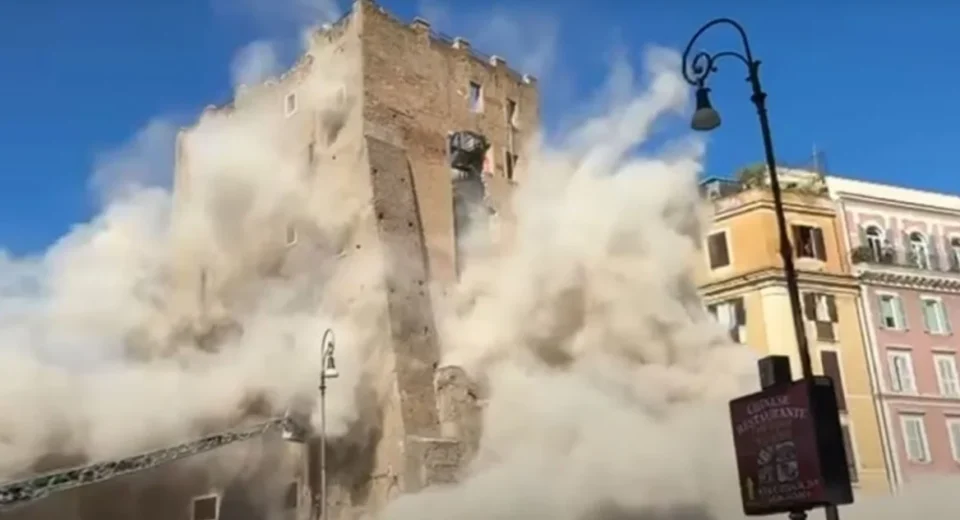 Μερική κατάρρευση πύργου κοντά στο Κολοσσαίο στην καρδιά της Ρώμης